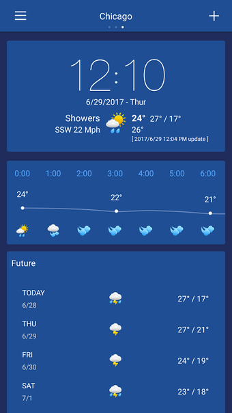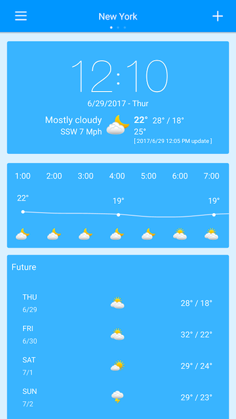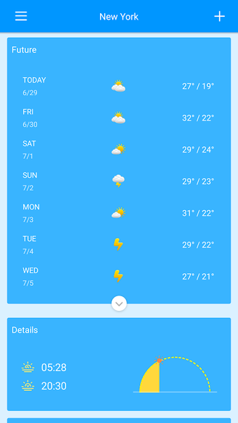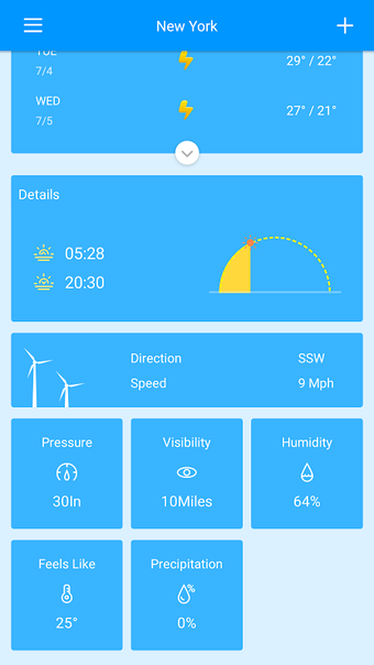 แอพนี้สามารถใช้เพื่อค้นหาอุณหภูมิปัจจุบัน ความเร็วลม ทิศทางลม ความน่าจะเป็นที่ฝนจะตก เมฆปกคลุม ทัศนวิสัย ดัชนีรังสียูวี จุดน้ำค้าง ความดัน และระดับความสูง