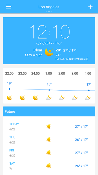 นอกจากนี้ คุณยังสามารถดูเวลาปัจจุบันและสภาพอากาศในพื้นที่ของคุณ คุณสามารถเลือกภาษาที่จะใช้ คุณสามารถดูการพยากรณ์ในอีก 24 ชั่วโมงข้างหน้า สองสัปดาห์ข้างหน้า หรือปีถัดไป คุณยังสามารถเลือกตำแหน่งเพื่อรับข้อมูลสภาพอากาศปัจจุบัน แอพนี้ออกแบบมาเพื่อใช้งานโดยผู้ที่ไม่ค่อยมีประสบการณ์กับสภาพอากาศ ไม่ได้ออกแบบมาให้นักอุตุนิยมวิทยาหรือนักวิทยาศาสตร์ใช้